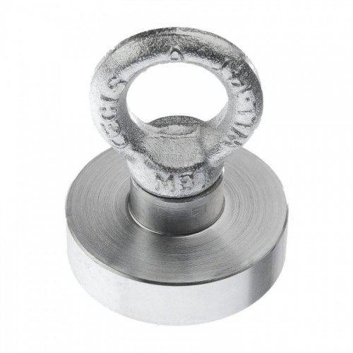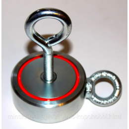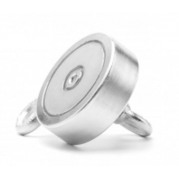 Як правило, ці вироби характеризуються круглою формою, і обов'язково містять на одній зі своїх поверхонь кріплення у вигляді кільця - рим-болти. За допомогою даного елемента здійснюється від'єднання потужного магніту від того чи іншого предмета. Кожен пристрій містить маркування у вигляді літери F (від англійського Force - Сила) і цифру, що символізує зусилля притиску. Наприклад, F300х2 значить, що це дуже утримує вагу в 300 кг, а саме воно є двостороннім.